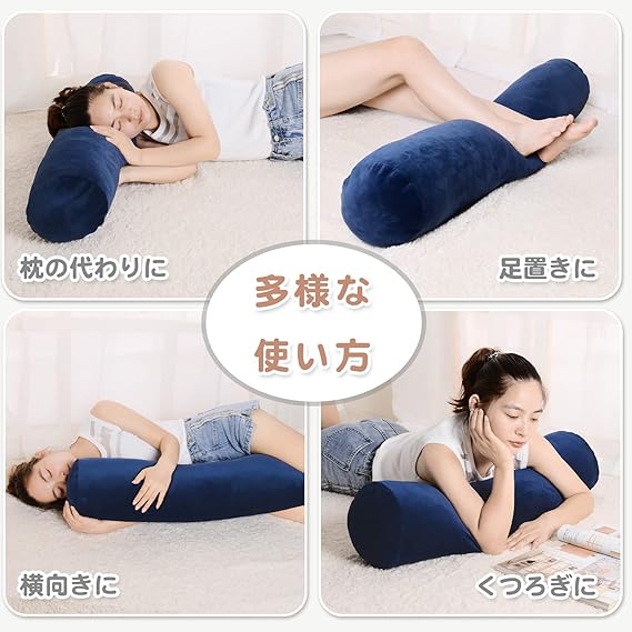 Baibu Home シリコンワタ 抱き枕 ネイビー もちもち ふわふわ 気持ちいい だきまくら クッション 円柱 可愛い 約80cm