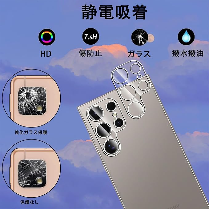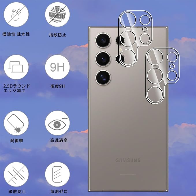 【対応機種】 FOR 【2+2枚】Galaxy S25 Ultra 用のレンズ保護フィルム*2+ガラスフィルム*2+ガイド枠付き*1+取扱説明書*1