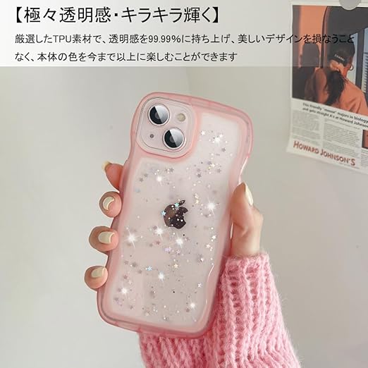 YUYIB iPhone 14 Plus ケース クリア キラキラ かわいい tpuソフトケース 薄型 傷防止背面 滑り止め 指紋防止 ストラップホール付き スマホケース アイホン14プラス カバー (ピンク, iPhone14 Plus 6.7") a