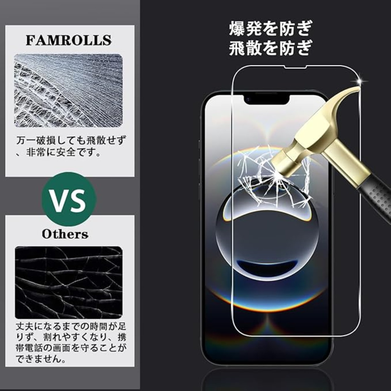 【対応機種】 iPhone 16E 専用。素材に日本製の旭硝子を採用。【四枚セット】 2枚 用 いphone16E 強化ガラスフィルム+ 2枚カメラ保護フィルム。【FAMROLLS正規品】スマホの周辺アクセサリーを長年手掛けるFAMROLLSメーカーの人気スマホガラスフィルムです。安心してご注文ください。