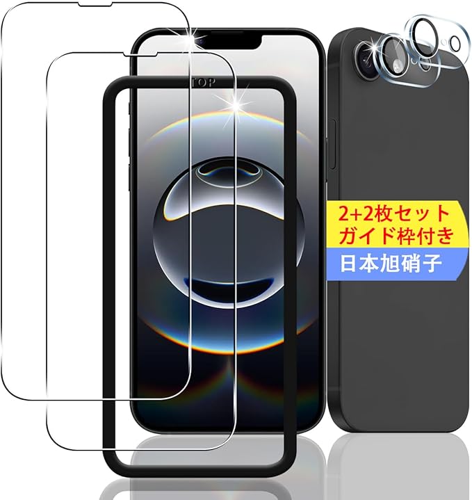 【2+2枚セット ガイド枠付き】 対応 iPhone 16E ガラスフィルム スマホ 保護フィルム (2枚) + 用 アイフォン16E レンズ保護フィルム (2枚) 【日本製素材旭硝子製】 用 いphone16E フィルム 強化ガラスフィルム 全面吸着 高透過率、硬度9H、3D Touch対応、飛散防止、指紋・汚れ防止、気泡ゼロ、ラウンドエッジ加工【FAMROLLS正規品】 a