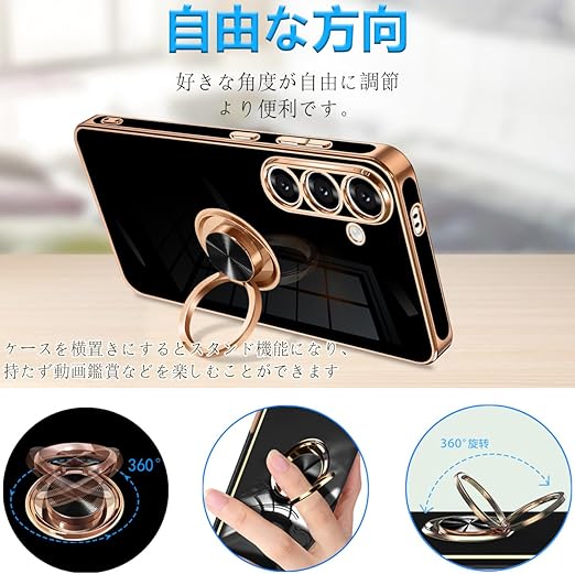 Galaxy S25 ケース リング ギャラクシーs25 SC-51F スマホケース リング付き 耐衝撃 TPU 携帯カバー シリコン スタンド機能付き 360回転車載ホルダー (ブラック) a