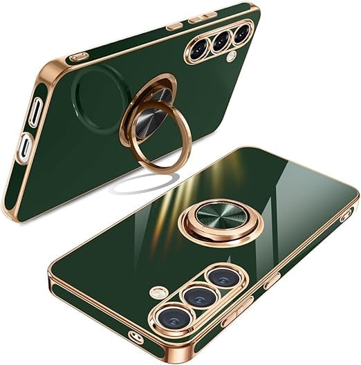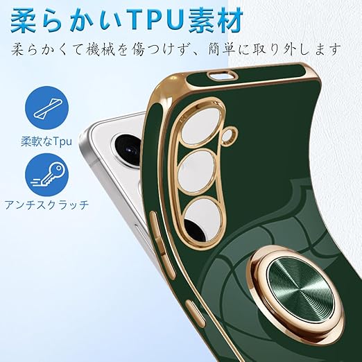 Galaxy S25 ケース リング ギャラクシーs25 SC-51F スマホケース リング付き 耐衝撃 TPU 携帯カバー シリコン スタンド機能付き 360回転車載ホルダー (ダークグリーン) a