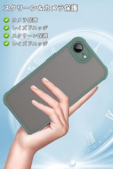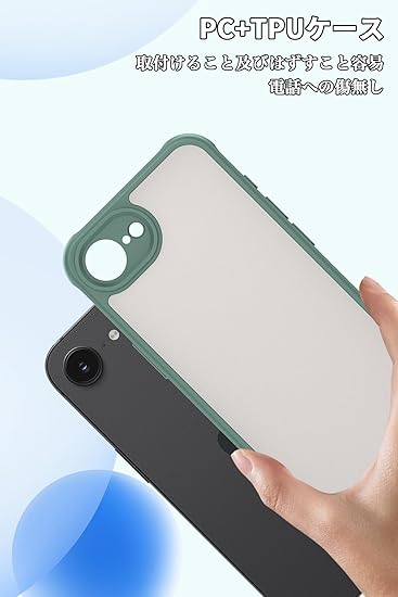 For iPhone 16e ケース Mosasa iPhone 16e カバー マット感 半透明 TPU+PC レンズ保護 薄型 指紋防止 落下防止 安心保護 軽量 全面保護カバー (グリーン) a