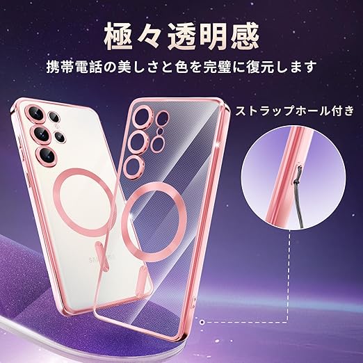 fagazzfu Galaxy S25 Ultra ケース クリア MagSafe対応 ギャラクシー S25 Ultra スマホケース 耐衝撃 傷防止の メッキ加工 SC-52F SCG32 カバー レンズ保護 TPU ソフト 薄くて 指紋防止 滑り止め 黄変防止 人気 (ローズゴールド) a