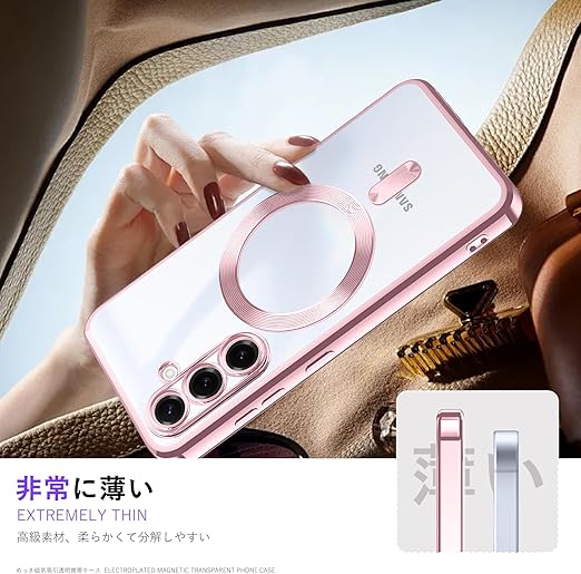 Galaxy S25 ケース MagSafe対応 メッキ加工 ギャラクシー S25 用マグネットケース 薄型 クリア 耐衝撃 スマホケース 超軽量 カバー ストラップホール付き 黄ばみにくい 柔軟 擦り傷防止 Zeunoen (ローズゴールド) a