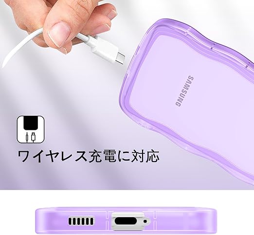 VENINGO Galaxy S22 ケース ギャラクシーS22 ケース クリア ウェーブ おしゃれ TPU+PC 韓国 かわいい 可愛い スマホケース 人気 シンプル 滑り止め 薄型 軽量 耐衝撃 指紋防止 レンズ保護 ストラップホール付き シリコン TPU バンパー 6.1インチ パープル a