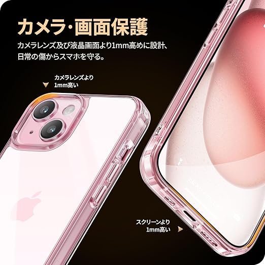 NIMASO ケース iPhone 15 用 保護ケース 黄変防止 耐衝撃 米軍MIL規格 SGS認証 PC背面 傷つけ防止 薄型 バンパー ワイヤレス充電対応 ストラップホール付き アイフォン15(6.1インチ)対応 スマホケース ピンク(氷星シリーズ)NSC23J844 a