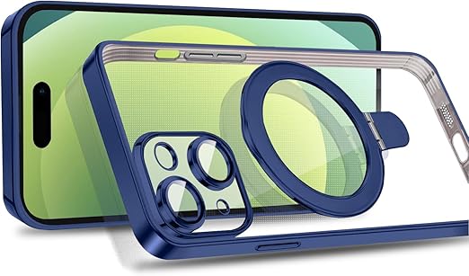 MuZiF iPhone 15 用 ケース MagSafe対応 リング付き クリア メッキ加工 カバー 車載ホルダー対応 多機能 レンズ保護 薄型軽量 耐衝撃構造 透明柔らかいTPU アイフォン15 用 磁気カバー クリアケース(iPhone 15用,ダークブルー) a