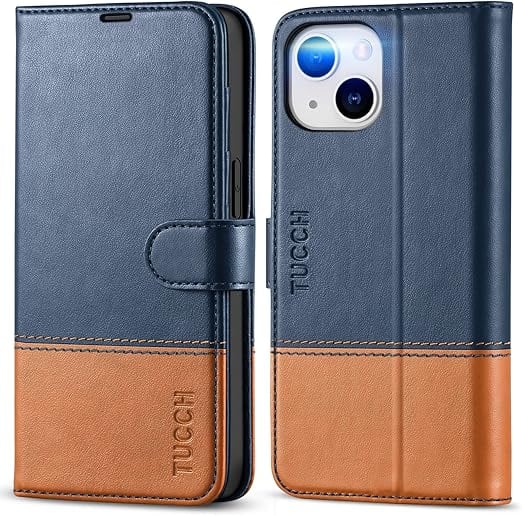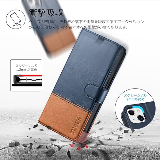TUCCH iPhone14 対応 ケース 手帳型 iPhone 14 ケース 手帳型 カード収納 スタンド機能 高級PU合皮 マグネット [RFIDブロッキング] アイフォン14 財布型 アイホン14 手帳 ケース (iPhone 14 6.1 インチ対応) ブルー&ブラウン a