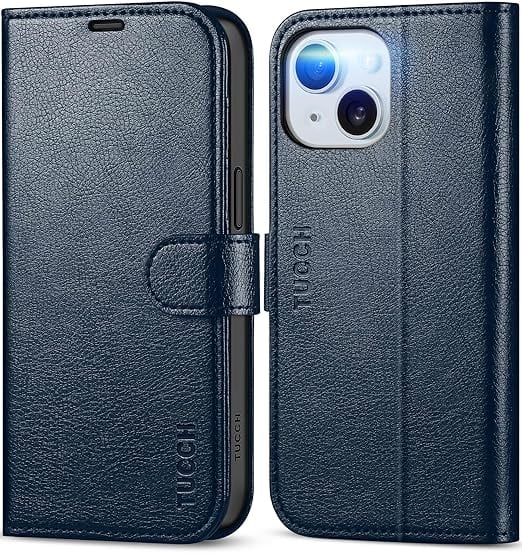 TUCCH iPhone 15 対応 ケース 手帳型 あいふぉん 15 ケース 手帳型 衝撃吸収 全面保護 カード収納 横置きスタンド 高級PU合皮 TPU素材 [RFIDブロッキング] アイフォン15 スマホケース アイフォン 15 用 ケース 2023年発売 6.1インチ 5G 対応 ネイビーブルー&テクスチャー a