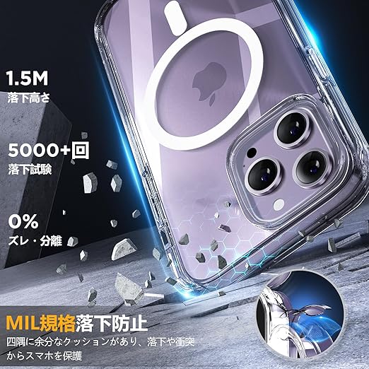 【強力な磁力吸着】iPhone14pro 用 Magsafeケース内部には、N52マグネ