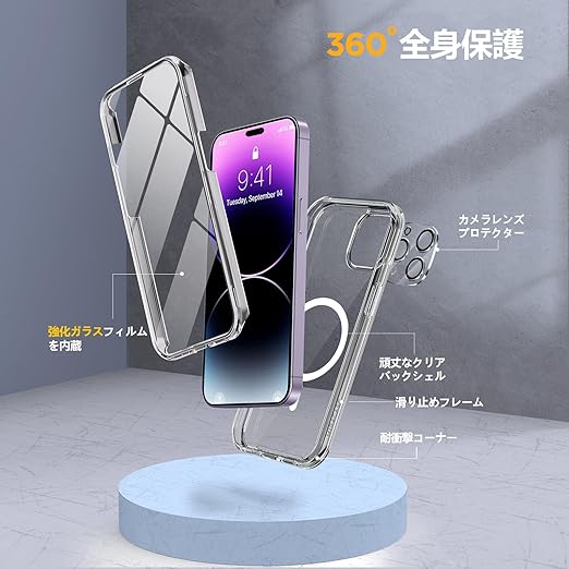 【MagSafe対応】Miracase iPhone14pro用ケース スマホケース iphone14プロ 用 カバー 全身バンパー保護ケース 9H 強化ガラス 6.1インチ フルカバー 360°保護 ワイヤレス充電対応 マグセーフ対応 クリア a