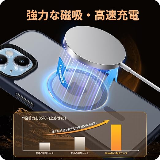 【MagSafe対応・強力な磁力吸着】スマホケース内部に38個の強力なN52マグネットを搭載しており、一瞬でピッタリと高速充電を実現!いくら振っても落ちないので、充電しながらゲームをやっても問題なし!また、ワイヤレス充電やモバイルバッテリー・車載ホルダー・スタンド・リングなど全てのMagSafe用アクセサリーにもばっちり対応しています。