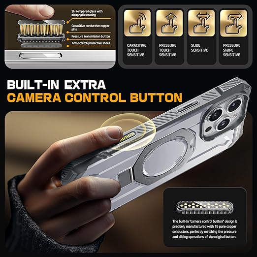 【革新の技術登場】:iPhone 16Pro Max向け最新デザインを登場。ケースの側面にある撮影ボタンに革新の技術を採用し、完璧にiPhone 16Pro Maxのボタン機能を再現し、シームレスな体験を提供します。外観特許番号:24D1751US-D1,038,101|認証時間:Aug.6,2024