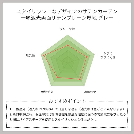 ※一級遮光は光を完全に遮るものではありません。光漏れを気にされる方は遮光効果の高い濃色がおすすめです。
