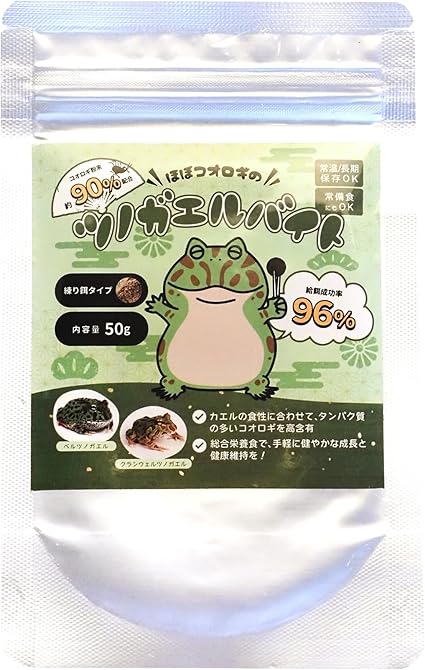魚粉不使用で匂いを軽減し、カエルの健康的な成長をサポートします。