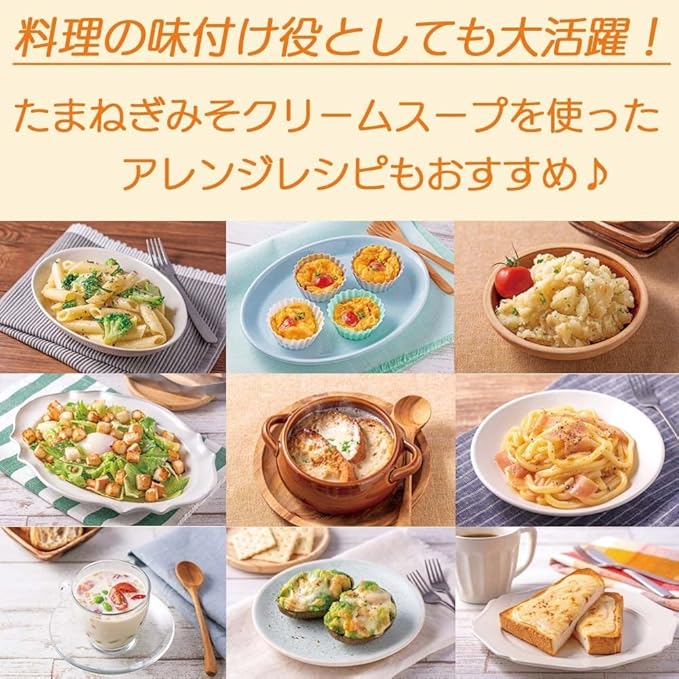 【原材料】粉末油脂、オニオン粉末、でん粉、粉末みそ、チキンエキス粉末、グラニュー糖、たん白質濃縮ホエイ粉末、乳等を主要原料とする食品、たん白加水分解物、食塩、酵母エキス、チーズ加工品、ガーリック粉末、うきみ(乾燥たまねぎ加工品(たまねぎ、乳糖、パーム油、醤油))/調味料(アミノ酸等)、乳化剤、トレハロース、カゼインNa、加工デンプン、着色料(カラメル、クチナシ)、酸化防止剤(V.E)、(一部に小麦・乳成分・大豆・鶏肉を含む)