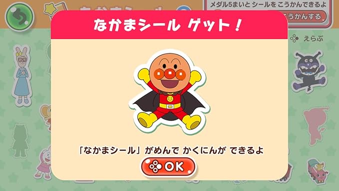 今回のソフトでは、指を使ってあいうえおのお勉強やミニゲームが楽しめる「タッチであそぼう」、音楽にあわせてジョイコンを振って楽しめる「ジョイコンであそぼう」、学んだことばが記録される「ことばコレクション」、ごほうびメダルを使って集める「なかまシール」の4つのメニューでアンパンマンと楽しく遊びながらお勉強ができます。