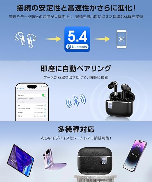 ワイヤレスイヤホン 【2025年超快適・音質強化モデル】 イヤホン 最新 Bluetooth 5.4 小型 軽量 最大60H再生 Hi-Fi カナル型 ENC/AAC ENC 通話 ブルートゥース イヤホン 自動ペアリング ワイヤレス ノイズキャンセリング Type-C充電 IPX7防水 タッチ式 片耳/両耳 iPhone Android適用 ビジネス/WEB会議/通勤/通学/スポーツ a