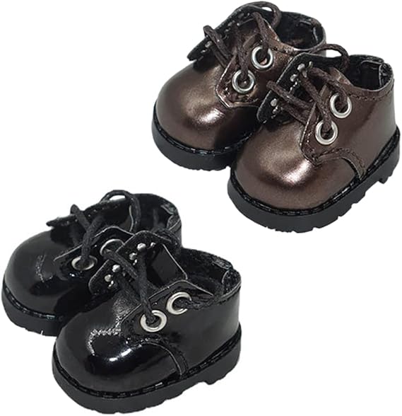 niannyyhouse 10cm ぬいぐるみ 革靴 綿人形の靴 靴の長さ約3.8cm 着せ替え (Black+Brown) a