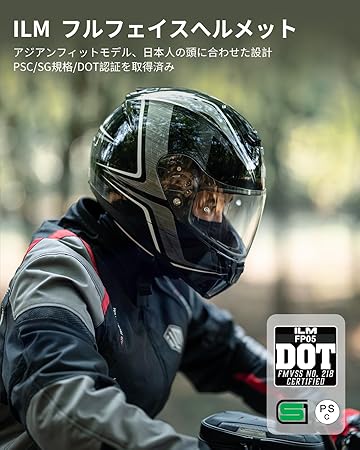 ILM バイクヘルメット フルフェイス SG/DOT規格 ベンチレーション 内装着脱 UVカットシールド付き 全排気量対応 アジアンフィットモデル FP05 a