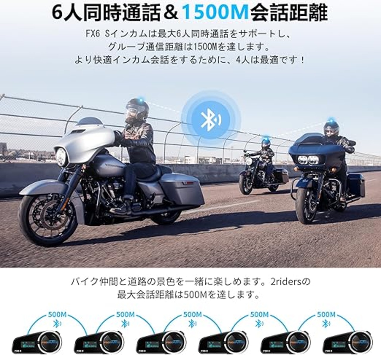 FODSPORTS バイク インカム FX6 S インカム 液晶画面表示 6人同時通話 Bluetooth5.0 HI-FI音質 ワイドFMラジオ 20H連続使用可能 他のインカムと接続可能 CVCノイズキャンセル 通信自動復帰 IP65防水 音声コマンド 12S自動応答 付属品付き ヘルメット用インカム 操作簡単 日本語音声案内&取説 技適マーク認証済み(1台) a