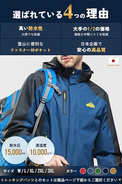 [ベンケ] 【雨風に強い】 アウトドアジャケット メンズ 登山ウェア 防水 登山服 【TPUラミネート採用】 マウンテンジャケット 防風 撥水 【耐水圧15,000mm&透湿度10,000g/㎡】 e