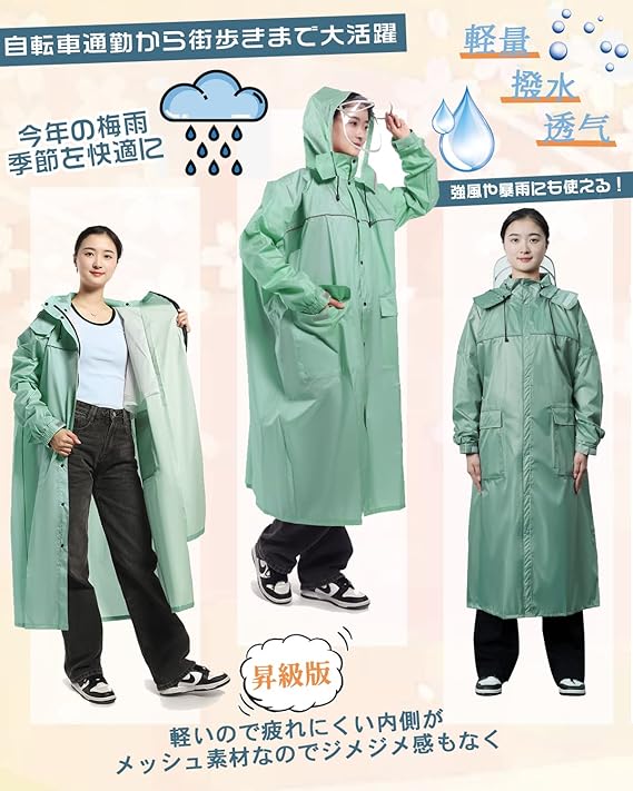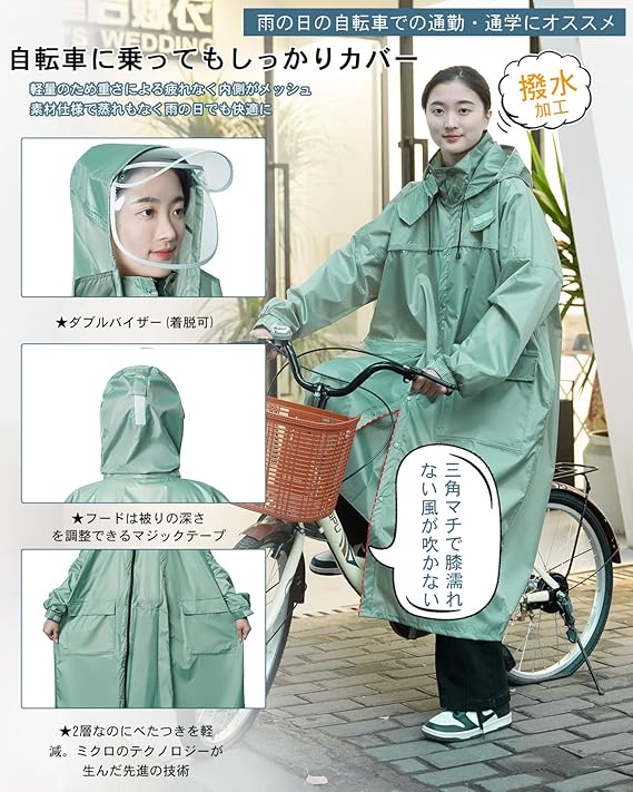 [Fipiifly] レインコート 自転車【通気性メッシュ・取り外し可能なフード】 レインコート レディース 自転車 カッパ リュック対応 ポンチョ メンズ 自転車 レインコート 反射テープ 多機能 軽量 通勤通学 防風防水 男女兼用 収納袋付き d