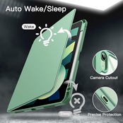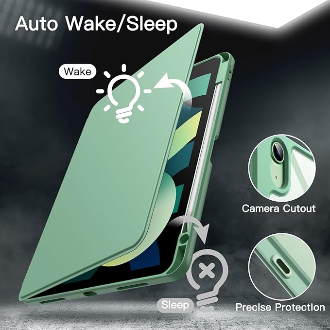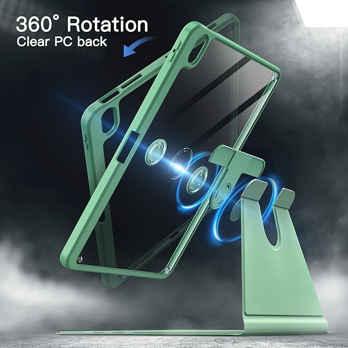 JEDirect 回転ケース iPad Air 11インチ M3/M2 (2025/2024)、iPad Air 5/4用 (2022/2020、第5/4世代、10.9インチ) Pencilホルダー付き 360°回転保護 スタンドカバー クリアバック 自動ウェイク/スリープ (グリーン) a
