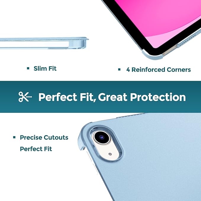 ProCase iPad 10世代 ケース 2022 10.9インチ A2696 A2757 A2777 軽量 耐衝撃 三つ折り スタンド スマートカバー(スカイブルー) a