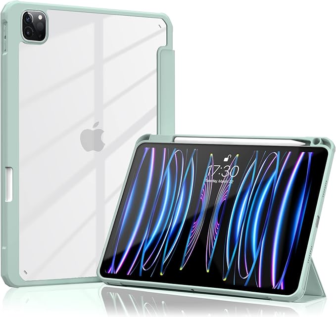 Aoub iPad Pro 11インチ ケース (2022/2021/2020) 第4/3/2世代 透明 バックカバー Apple Pencil 収納可能 Apple Pencil 2 ワイヤレス充電対応 三つ折スタンド スリープ機能 軽量 薄型 傷つけ防止 PU合成レザー TPU クリアバックカバー ライトグリーン a