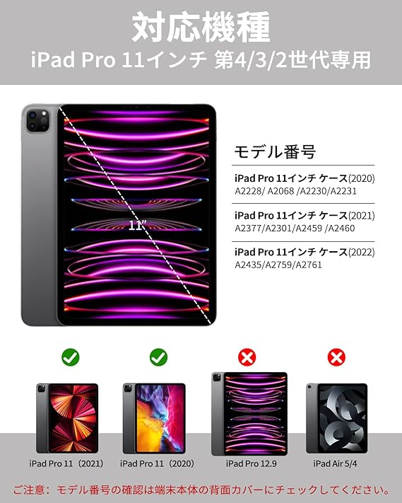 【対応機種】新型 iPad Pro 11インチ 2022年発売モデル 第4世代 / 2021年発売モデル 第3世代 / 2020年発売モデル 第2世代 アイパッド (対応モデル番号 A2435, A2759, A2761, A2301, A2377, A2459, A2228, A2068, A2230) ご注意:iPad、iPad Air、iPad Miniなどの他の機種には対応できません。