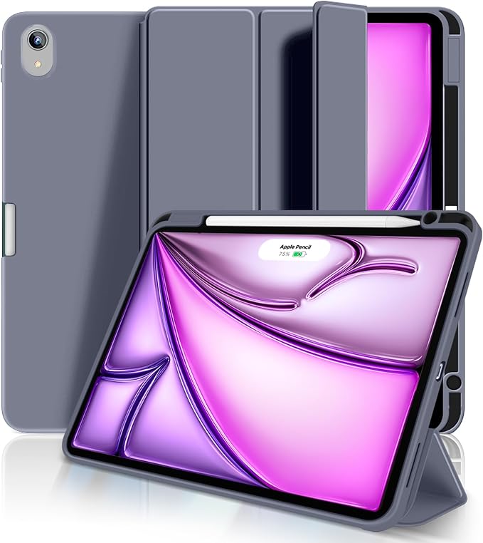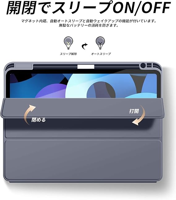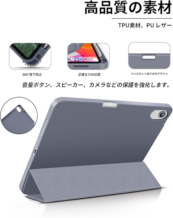 Aoub iPad Air 11 インチ ケース 2024 iPad Air 第5/4世代 カバー 2022/2020年 10.9 インチ Pencil Proペン収納 Apple Pencil2 ワイヤレス充電対応 オートスリープ/ウェイク機能対応 ソフト TPU 薄型 軽量 耐衝撃 三つ折りスタンド(ブルーグレー) a