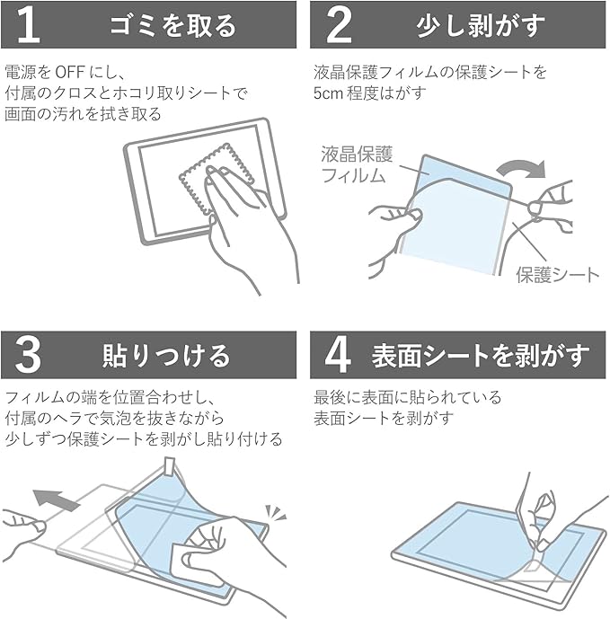 iPad Pro 11インチ (第4世代)(2022年モデル)、iPad Air (第5世代)(2022年モデル)、iPad Pro 11インチ (第3世代)(2021年モデル)、iPad Air (第4世代)(2020年モデル)、iPad Pro 11インチ (第2世代)(2020年モデル)、iPad Pro 11インチ (2018年モデル)の液晶画面を傷や汚れから守る、指紋防止・反射防止タイプの液晶保護フィルムです。