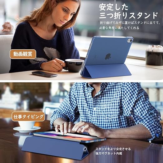 TiMOVO iPad Air 11インチ ケース M3/M2 第7/6世代 (2025/2024) iPad air 第5/4世代 ケース 10.9インチ iPadAir7/6/5/4 カバー 11インチ/10.9インチ TPU オートスリープ機能 全面保護 PUレーザー 三つ折り スタンド 着脱簡単 手帳型 半透明 ネイビーブルー a
