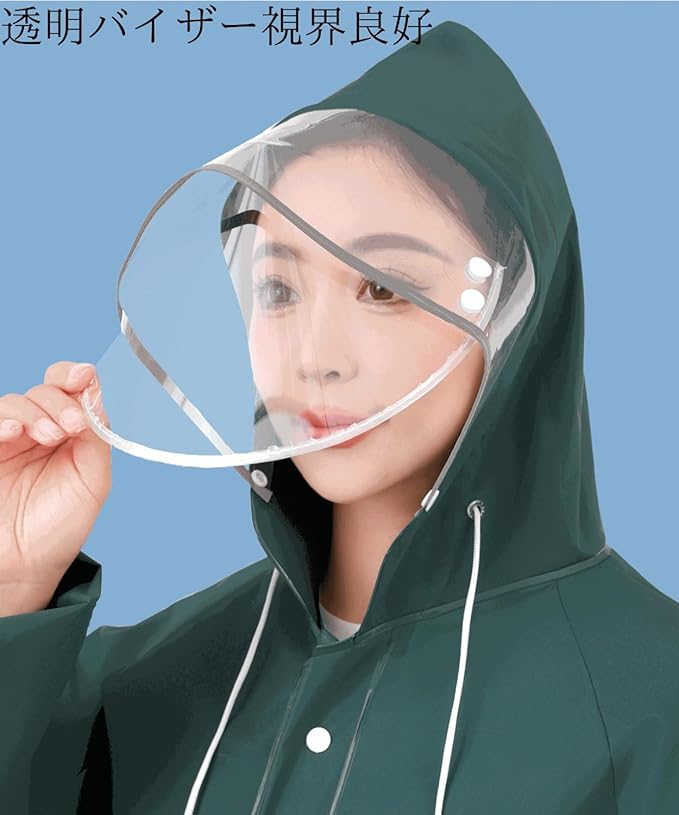[エブリワンラフス] レインコート レディース 自転車 大雨 リュック対応 雨具 二重透明レインバイザー 通勤 通学 防水 ロング丈 大きいサイズ かっぱ ポンチョ レインウェア 撥水 合羽 c