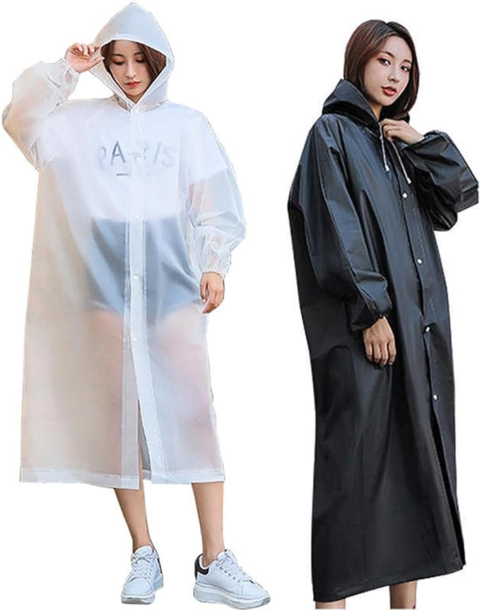 [PLMQAZ] 2個 雨合羽 レインコート 自転車 リュック対応 ポンチョ 自転車 自転車 大きいつばレインポンチョ 雨具 レインウェア 大きいサイズ 男女兼用 撥水 防水 防風 雨合羽 梅雨対策 耐久 軽量 通勤 通学(黒+白) [並行輸入品]