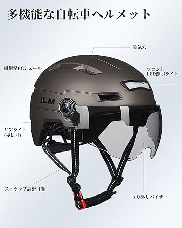 ILM 自転車 ヘルメット 大人 LEDライト付属 夜間照明 バイザー付き CE/PSE/CPSC/ASTM/EN1078認定 ロードバイク/サイクリングヘルメット 通学通勤 軽量 通気 耐衝撃 サイズ調節 男女兼用 a