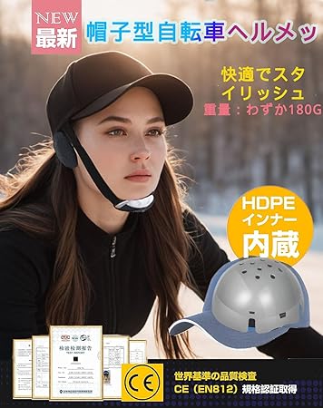 【2Way使い方】ヘルメット X UV対策。周りからは普通の帽子に見えますが、インナープロテクターが内蔵されており、頭部をしっかり保護できます。つ