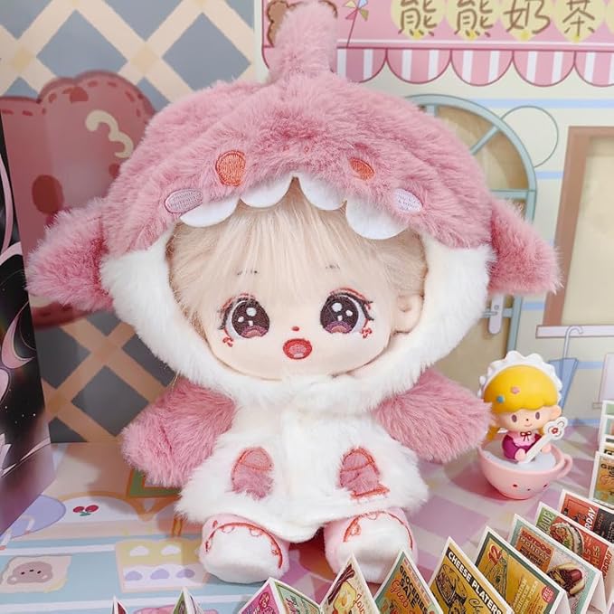 niannyyhouse 20cm ぬいぐるみ 服 ピンク シャークパーカー 靴 綿人形服 着せ替え アクセサリー a
