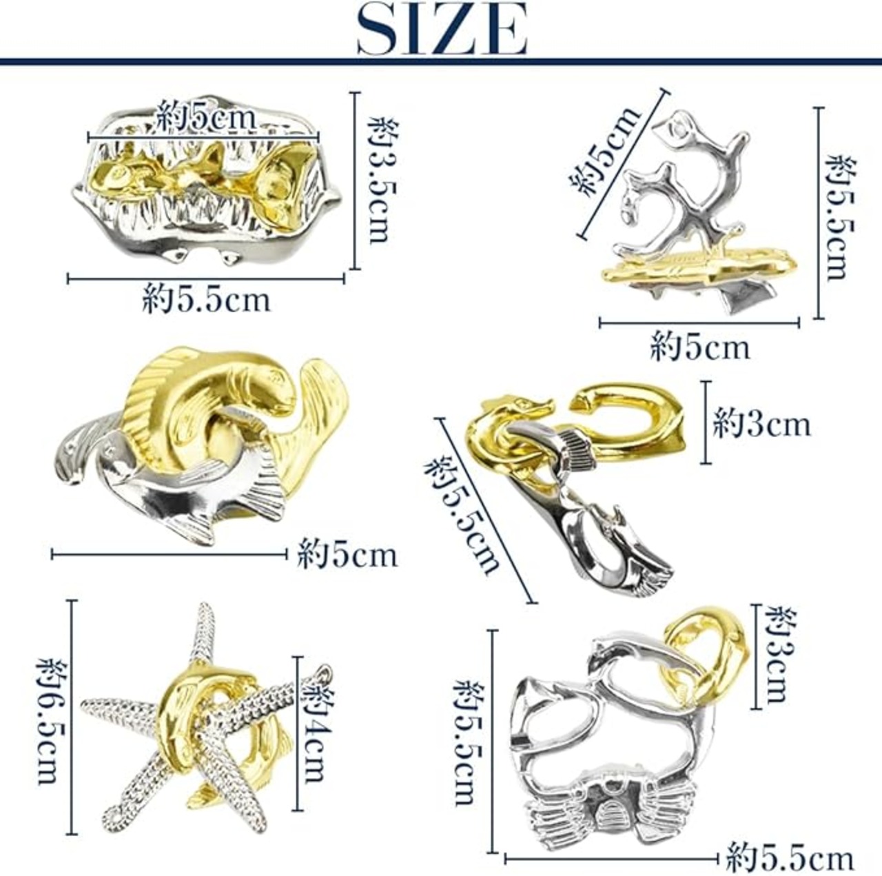 シルバーとゴールド部分が組み合わさっており、うまく外せればすっきり気分爽快!それぞれ6種類の難易度に分かれているので、簡単なものからチャレンジして全制覇を目指そう!