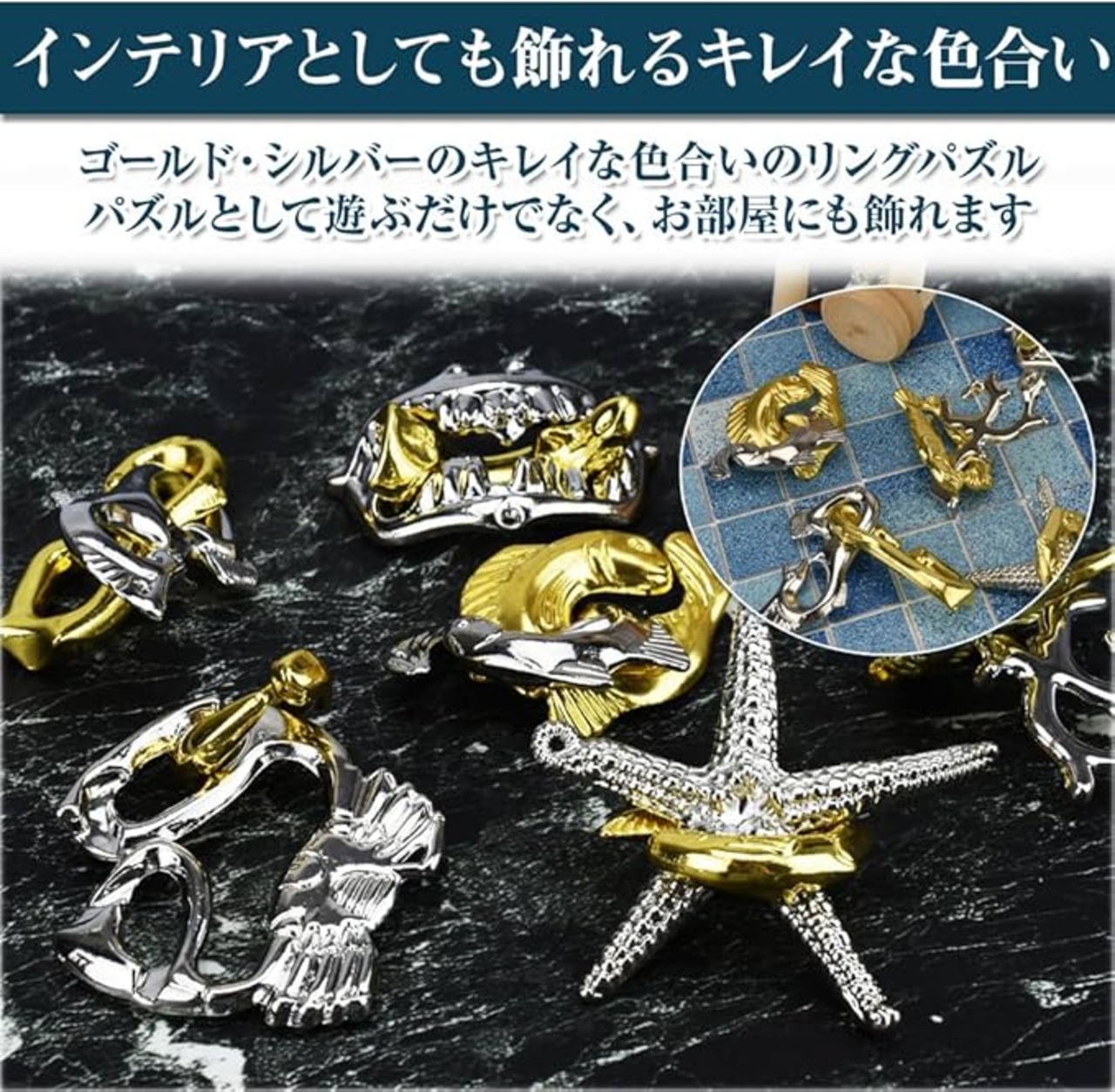 リングパズル インテリア アクセサリー 暇つぶし セット 子供 大人 知恵 脳トレ ゴールド シルバー a
