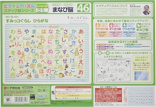 46ピース 子供向けパズル すみっコぐらし ひらがな まなび脳 【ピクチュアパズル】 a