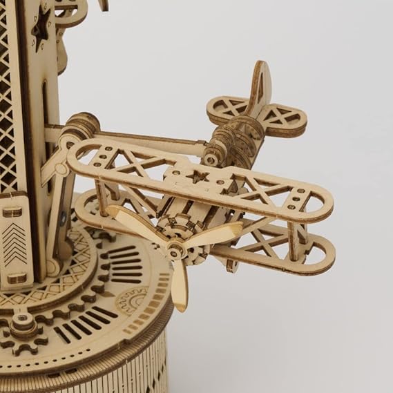 つくるんです【日本公式販売/日本語説明書付】Robotime 3D 動く!LED・オルゴール付きオルゴールウッドパズル シリーズ (コントロールタワー) a