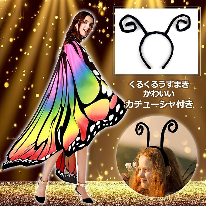 [PIENSE] コスプレ 仮装 ハロウィン ステージ衣装 マント 蝶々 ちょうちょ 羽 羽根 セット