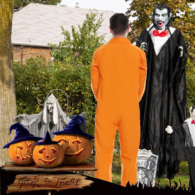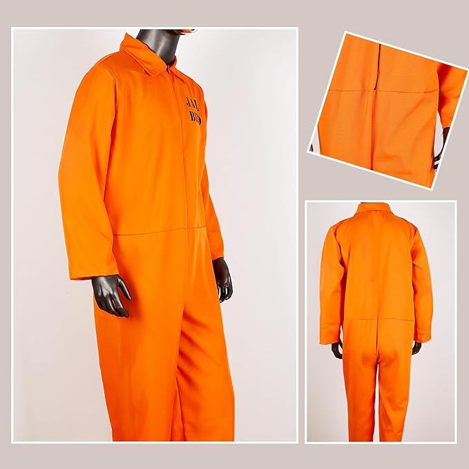 [Formemory] 囚人服 オレンジ コスプレ 囚人 仮装 コスプレ メンズ ハロウィン 囚人 コスチューム つなぎ 仮装 a