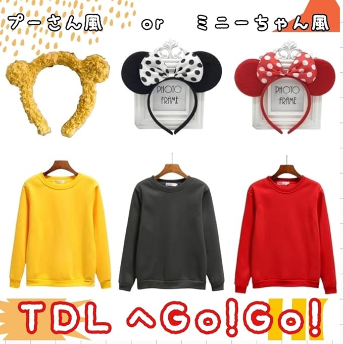 【Sai彩】 ハロウィン ミッキー ミニー プーさん コスチューム 〔 大人用 トレーナー カチューシャ 〕コスプレ レディース 可愛い ハロウィン 仮装 変装 制服 ハロウィンパーティー 誕生日 遊園 文化祭 学園祭 イベント カラーコーデ 友達 リンクコーデ 親子コーデ