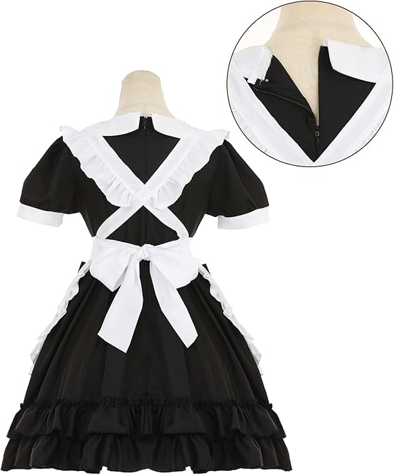 [NOKIJP] メイド服 コスプレ 【パニエ付き】 ワンピース ロリータ メイド コスチューム リボン ロング 半袖 ハロウィン ロリータ服 プリンセス 仮装 文化祭 学園祭 a