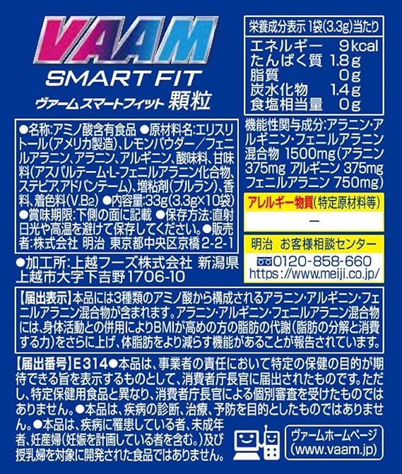 VAAM(ヴァーム) スマートフィット顆粒 レモン風味 3.3g×10袋 [機能性表示食品] アミノ酸 明治 a